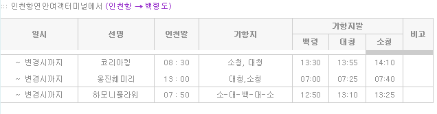 흰색翎섬과 대청도에 가코리아 프린세스호